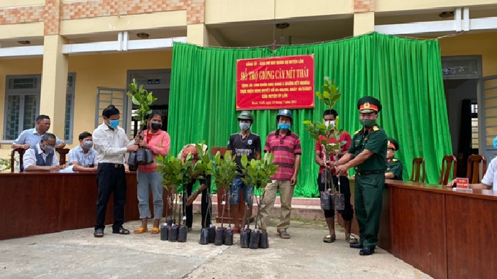 Đảng ủy - Ban Chỉ huy Quân sự huyện Lắk tặng giống cây mít thái hỗ trợ bà con Buôn kết nghĩa